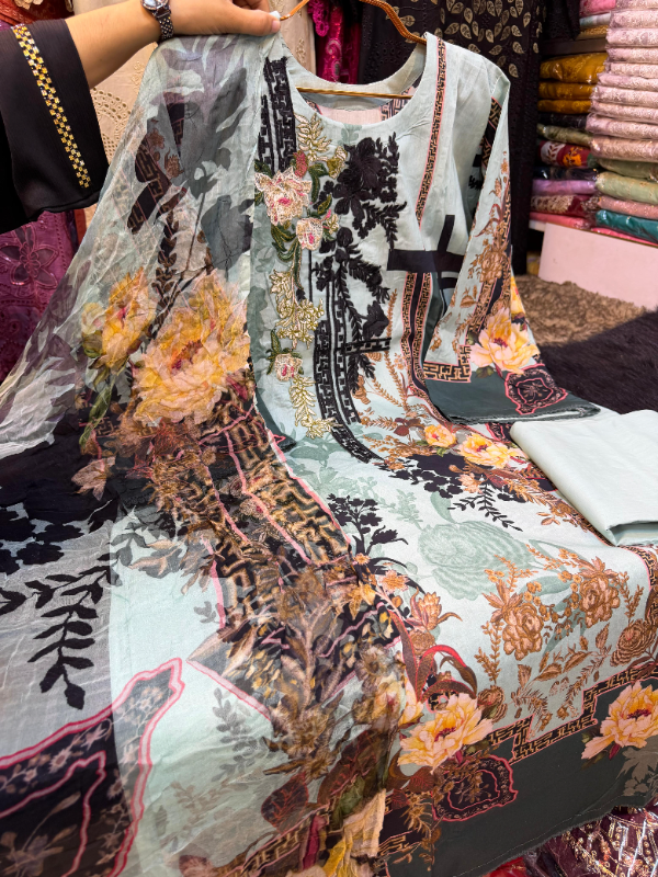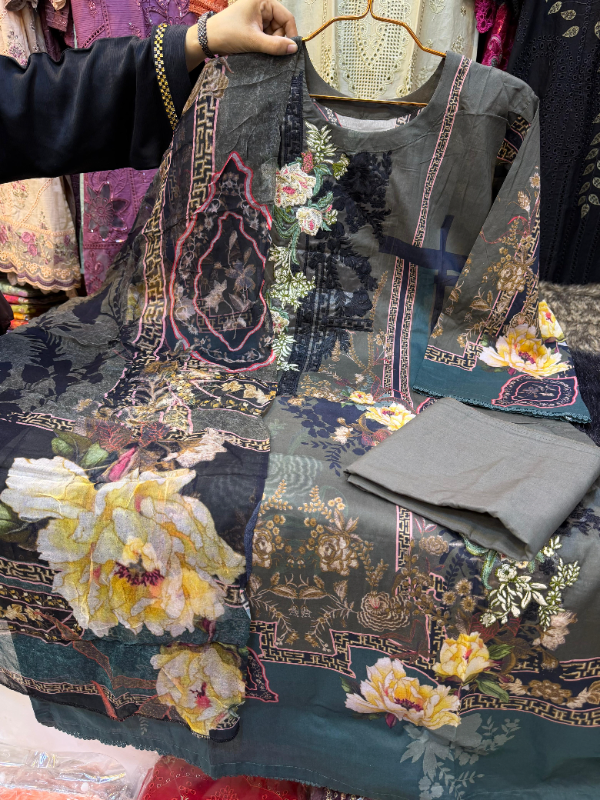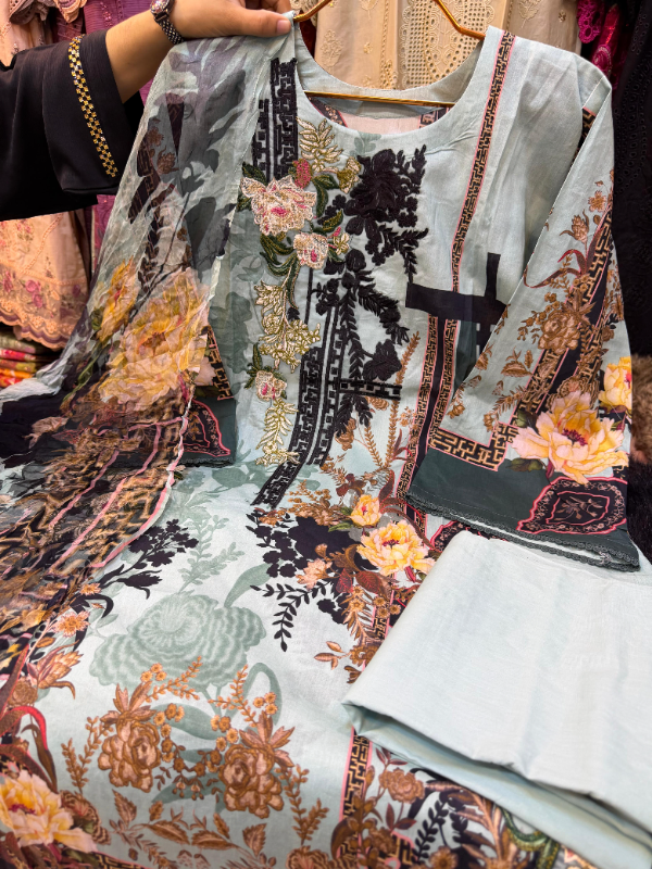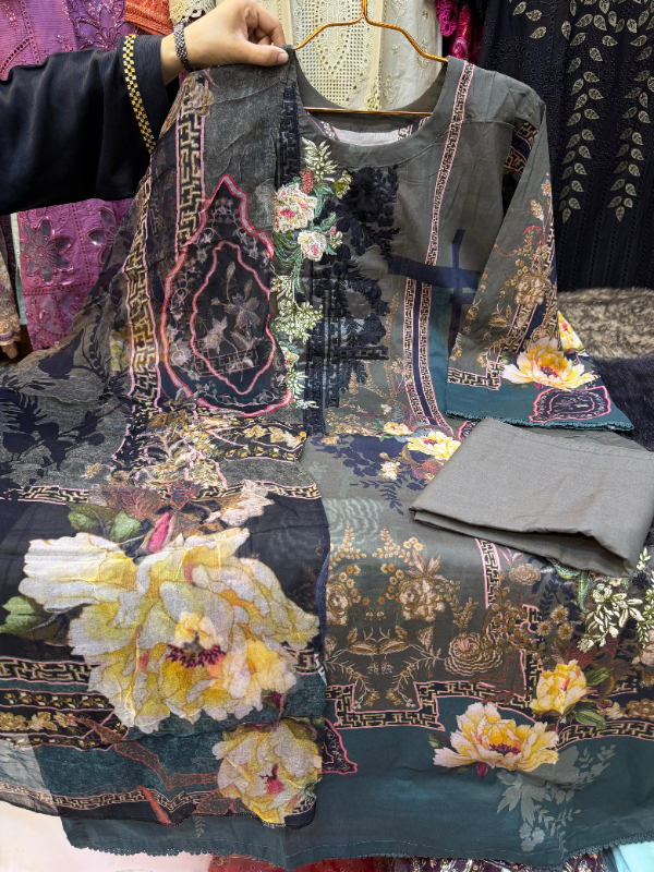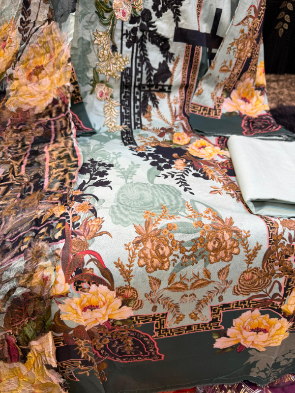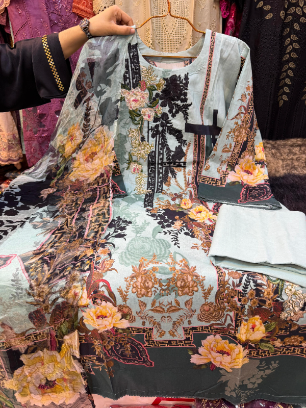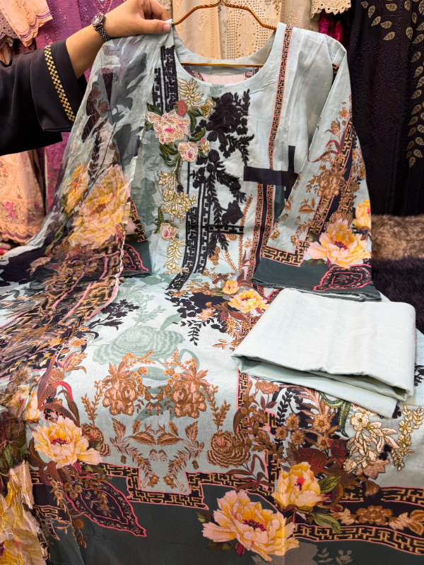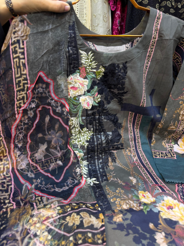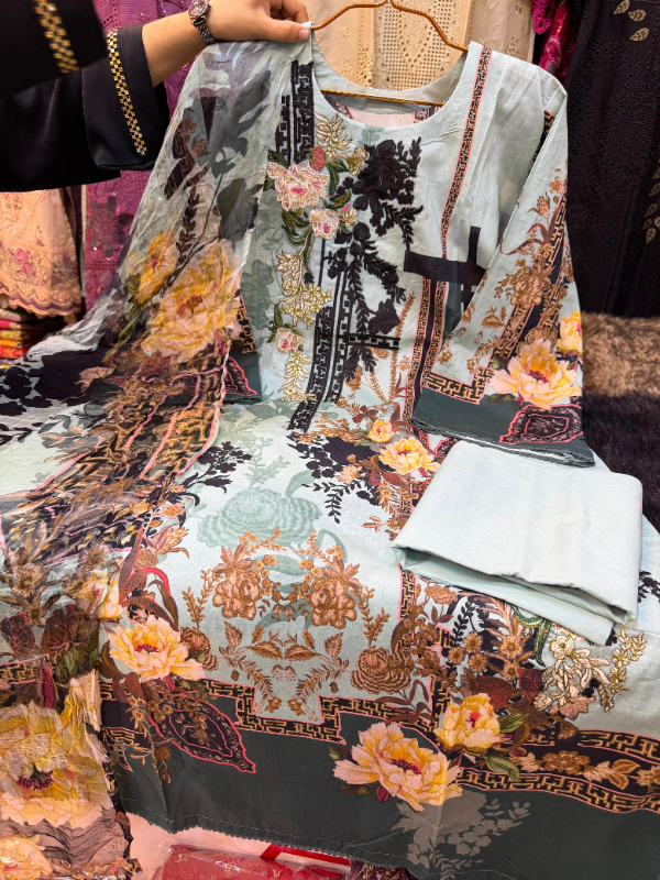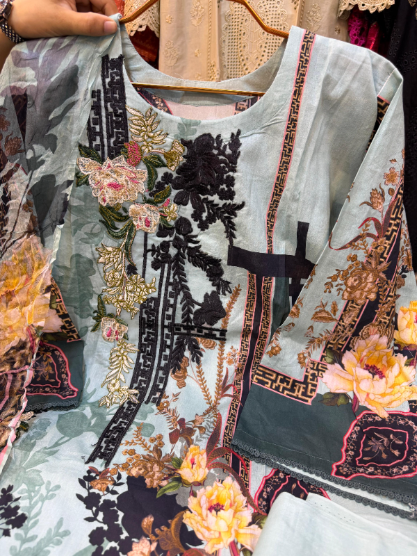 Swizz Lawn Embroidered Festive Salwar Suit Set
