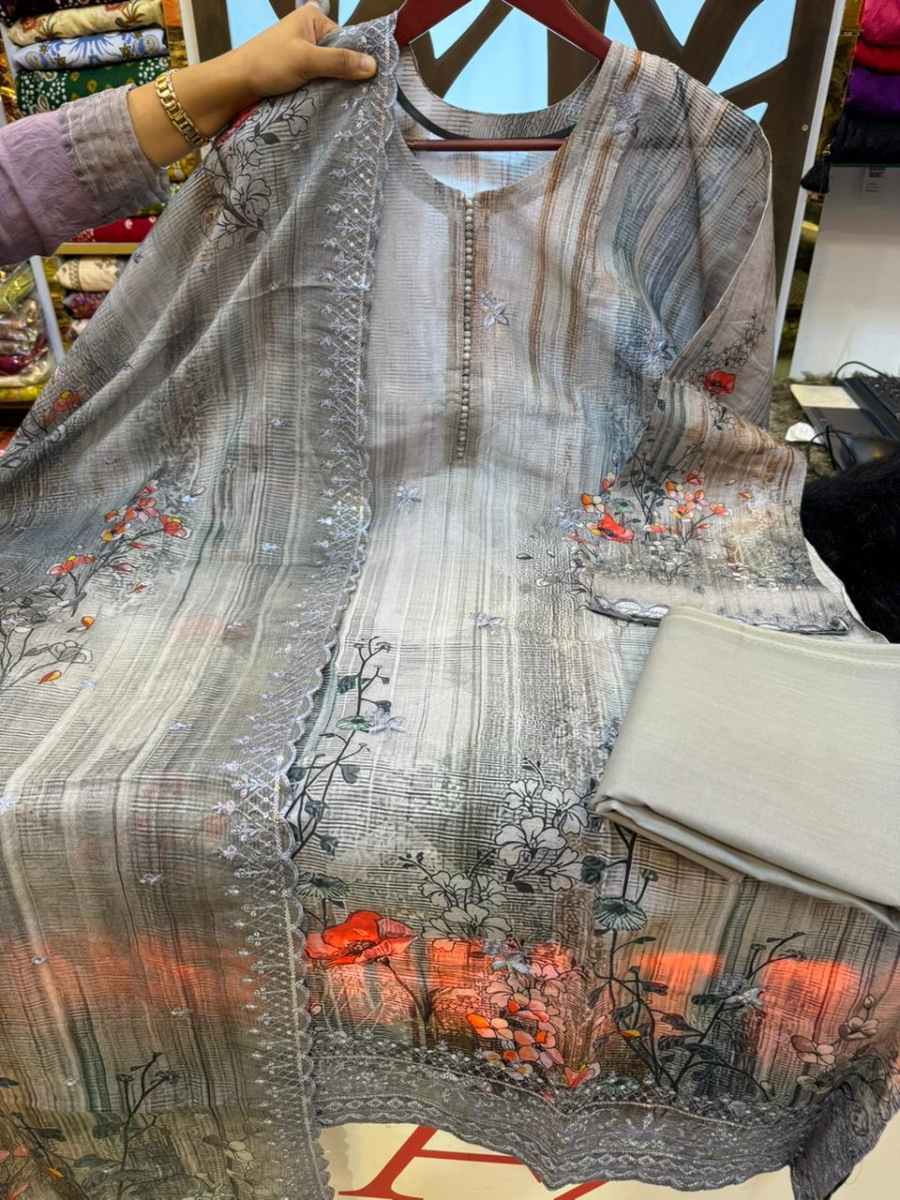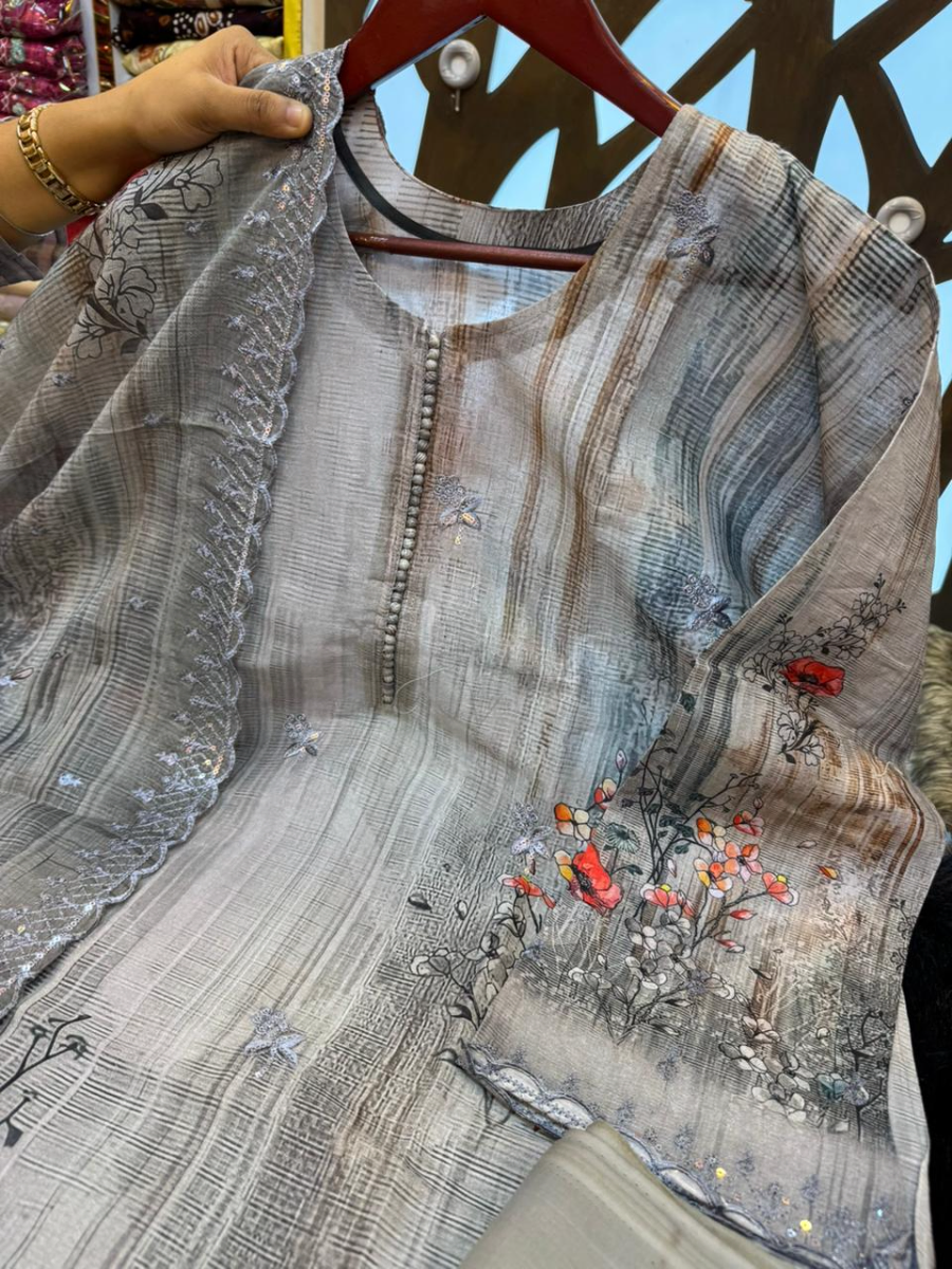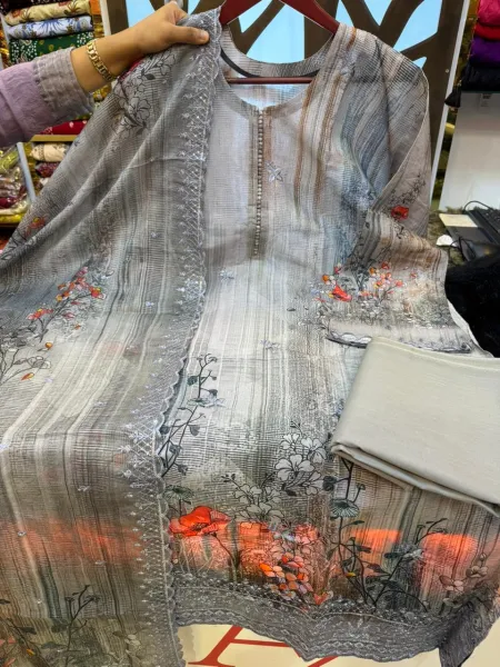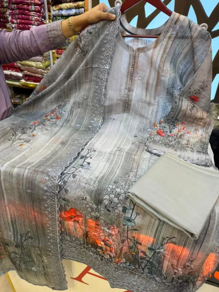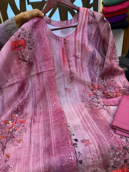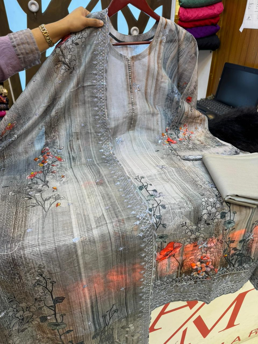 Kamiz - Floral Printed ,Embroidery & Sequence Work Dress