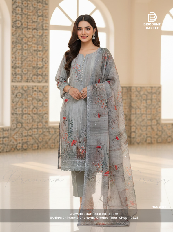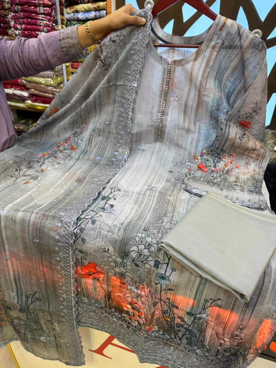 Premium Swizz Lawn Solid Embroidered 3Pc