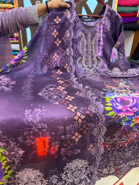Dupatta-Cotton (Digital Print+Embroidery & Sequence)